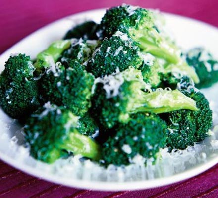 Cred ca acesta este cel mai simplu si mai gustos mod in care se poate manca broccoli. Broccoli cu parmezan se pregateste in doi timpi si trei miscari si este delicios. Este cea mai buna garnitura pentru carne la gratar, dar si fara carne poate sa fie o masa completa si foarte sanatoasa. Ca sa faci broccoli cu parmezan ai nevoie de o capatana mare de broccoli (800-900 de grame), o lingurita de unt, trei-patru linguri cu parmezan ras, sare si piper, sucul de la jumatate de lamaie, coaja rasa de lamaie si doua linguri cu seminte de susan. Fierbe broccoli in apa cu sare pentru cateva minute. Racoreste leguma sub jet de apa rece, pune-o intr-un bol si stropeste-o cu suc de lamaie. Topeste untul si rumeneste usor semintele de susan. Da deoparte si adauga parmezanul. Amesteca si rastoarna totul peste broccoli. Gata! Ai o masa delicioasa si super-sanatoasa. Ingredientele sunt pentru doua portii mari, fiecare avand doar 150 de calorii. Distribuie articolul pe: