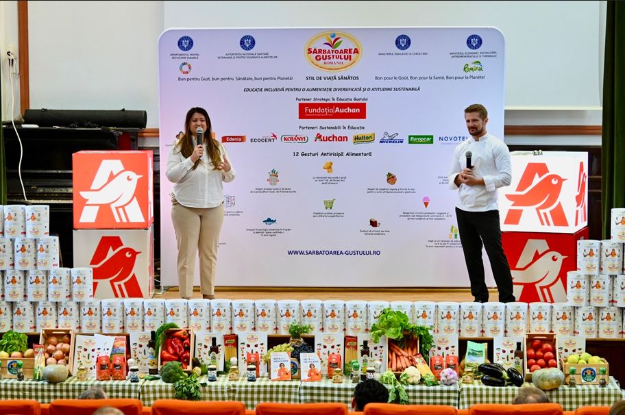 Programul, început încă din 2014 și aflat la cea de-a zecea ediție, își propune să îi familiarizeze pe copii, precum și pe părinții acestora, cu principiile unei alimentații sănătoase, diversificate și sustenabile Începând din luna octombrie, elevii de clasa a III-a din București vor învăța cum să mănânce echilibrat și să aibă grijă de mediul înconjurător, în cadrul programului educațional „Stil de viață sănătos, o alimentație diversificată și o atitudine sustenabilă”. Proiectul, desfășurat în perioada octombrie 2025 – iunie 2026, este implementat de Asociația Sărbătoarea Gustului, finanțat de Fundația Auchan, și vine în ajutorul cadrelor didactice prin materiale și suport educațional dedicate modulului opțional „Stil de viață sănătos”, aprobat oficial și publicat în 2023 în Monitorul Oficial al României. Programul, început încă din 2014 și aflat la cea de-a zecea ediție, își propune să îi familiarizeze pe copii, precum și pe părinții acestora, cu principiile unei alimentații sănătoase, diversificate și sustenabile, precum și cu obiceiuri zilnice care pot reduce impactul asupra mediului. Activitățile educaționale sunt structurate în două componente – cheie: Broșura pedagogică – un caiet de exerciții care combină activități practice desfășurate în clasă cu teme interactive pentru acasă, astfel încât copiii să învețe împreună cu părinții despre nutriție și obiceiuri sănătoase; Boneta de bucătar – disponibilă în 3.000 de exemplare, imprimată cu 12 gesturi anti risipă alimentară și oferită elevilor în cadrul evenimentelor „Lecțiile Gustului”, susținute în școli de Asociația Sărbătoarea Gustului. Aceasta simbolizează respectul pentru meseria de bucătar și este semnată, în fiecare an, de Chefi renumiți din întreaga lume. În plus, prin cartea „Arta de a mânca bine”, semnată de Chef Alain Alexanian, chef cu o stea Michelin din 1990, și distribuită în bibliotecile școlilor participante încă din 2014, copiii și profesorii au acces la sfaturi practice despre cum să pregătească mese sănătoase și gustoase, folosind ingrediente locale și metode de gătit echilibrate. Materialele educaționale îi ajută pe elevi să înțeleagă nu doar principiile unei alimentații sănătoase, ci și noțiuni din alte domenii, precum geografie, științele naturii, matematică, istorie, turism, agricultură durabilă și meseriile din industria HoReCa. Programul educațional este completat de o serie de evenimente practice reunite sub numele „Lecțiile Gustului”, care se vor desfășura în perioada noiembrie 2025 – mai 2026 în mai multe școli din Capitală. În cadrul acestor întâlniri, elevii vor descoperi, prin demonstrații interactive și exerciții practice, cum pot adopta obiceiuri alimentare sănătoase și cum pot contribui la reducerea risipei alimentare, învățând totodată despre respectul față de mâncare, meseria de bucătar și gustul autentic al produselor locale. „Educația pentru un stil de viață sănătos și sustenabil încă din școală este esențială și contribuie direct la atingerea mai multor Obiective de Dezvoltare Durabilă ale ONU, în special la Obiectivul 4 – Educație de calitate, dar și la Obiectivele 3, 8, 10, 12 și 13, care țin de sănătate, echitate, consum responsabil și acțiune climatică. Pentru o viață sănătoasă, cheia se află în educația gustului, începând din copilărie. Astfel, luăm măsuri din timp, militând și acționând pe termen lung pentru binele fiecărui cetățean, pentru a avea o sănătate mai bună, pentru reducerea risipei alimentare și, odată cu aceasta, contribuim la reducerea amprentei de carbon., a declarat Daniel Dobre, Co-fondator si Președinte Sărbătoarea Gustului. Evenimentul de lansare a ediției din acest an a avut loc miercuri, 16 octombrie, cu ocazia Zilei Mondiale a Alimentației, la Colegiul Național „Școala Centrală” din București. Zeci de elevi au fost prezenți, alături de Oana Marciana Ozmen – fost deputat, expert în energie, Ana Maria Ștefan – Reprezentant Inspectoratul Școlar al Municipiului București, Viorel Morărescu – Ambasadorul Agriculturii Ecologice în România și director al Direcției Politici în Sectorul Vegetal din MADR, Roxana Iordan – reprezentant ANSVSA, Corina Dospinoiu-Imre – Director sustenabilitate Auchan România, Patrick Pierre Pettenuzzo – Expert Sustenabilitate Turism & Horeca și Co-președinte Sărbătoarea Gustului ONG. „Asociația Sărbătoarea Gustului dezvoltă un proiect valoros, axat pe educația pentru o alimentație sănătoasă, pe consumul produselor locale și pe combaterea risipei alimentare — obiective perfect aliniate cu strategia noastră de sustenabilitate. Suntem onorați să fim parte din această inițiativă și să contribuim, pas cu pas, la o schimbare pozitivă în comunitate”, a declarat Corina Dospinoiu – Imre, Director Sustenabilitate, Auchan România. Programul este susținut de Ministerul Educației, cu sprijinul Departamentului de Dezvoltare Durabilă din cadrul Guvernului României, Ministerul Economiei, Antreprenoriatului, Digitalizării și Turismului și ANSVSA, precum și de partenerii: Auchan Retail România, Michelin, Edenia Foods, Ecocert România, Kotanyi, Paste Hutton, Up România, Novotel, Europcar, English Tea Shop. Despre Sărbătoarea Gustului Motto: Bun pentru Gust, Bun pentru Sănătate, Bun pentru Planetă! Asociația Sărbătoarea Gustului se preocupă de educarea gustului consumatorilor în rândul copiilor şi al părinților, liceenilor și tinerelor generații de bucătari prin informarea și transparența pedagogică asupra produselor, originilor acestora și modului de producție și trasabilitate. În egală măsură, Asociația își propune transmiterea cunoștințelor și încurajarea unui comportament alimentar
