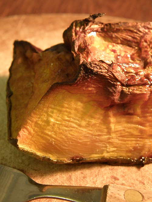 Nu avem nevoie decat de dovleac. Acesta contine zaharuri naturale asa ca nu mai trebuie sa adaugam nimic dulce. Dovleacul matur are numeroase proprietati curative si este foarte indicat in diete si cure de slabire. De asemenea, atunci cand deserturile sunt greu de ales din cauza numarului mare de calorii si grasimi, dovleacul copt este alegerea potrivita. Prima si prima data trebuie sa cumparam dovleacul. Il gasim in general in pietele agroalimentare si acesta este locul din care va recomand sa il cumparati. Este mai probabil sa gasiti aici dovleac care a fost crescut fara ingrasaminte chimice. Poteti sa cumparati un dovleac intreg sau doar o felie, dupa cum doriti. Reteta nu specifica o cantitate anume. Dupa ce ajungem acasa, dam drumul la cuptor. Intr-o tava punem hartie de copt. Se poate si fara, dar asa, tava nu se va murdari. Dovleacul trebuie curatat de seminte daca nu a fost deja curatat de catre vanzator. Apoi trebuie taiat in bucati , cam cat credeti ca doriti sa mancati odata. Bucatile se aseaza in tava cu coaja in jos si se introduc la cuptor la foc mic. Dovleacul se uita in cuptor pentru aproximativ 2 ore (depinde de grosime si marimea bucatilor.) Este gata atunci cand trecem furculita sau scobitoarea foarte usor prin el. Deasupra este posibil sa prinda o crusta maro inchis…dar nu va speriati ca nu se arde ci se caramelizeaza. De fapt, aceea este parte care imi place cel mai mult. Apoi se serveste rece sau fierbinte, depinde cat de frig va este! Pofta buna! 100 de gr. de dovleac copt contine: 19 calorii, 1 gr proteine, 0 gr lipide, 5 gr carbohidrati. Tips: pentru un gust si o aroma mai rafinata, puteti presara deasupra putina scortisoara! Distribuie articolul pe: