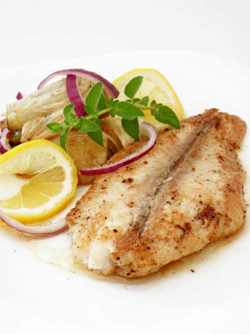 Ce zici de peste cu fennel si lamaie? Pestele merge foarte bine in combinatie cu o leguma mediteraneana, asa cum este fennelul. Leguma exotica se potriveste foarte bine si cu fructele de mare, iar orice combinatie care contine fennel devine un rasfat. Reteta are foarte putine calorii, fiind idealat in cursul dietelor cu putine calorii. Ca sa pregatesti peste cu fennel si lamaie ai nevoie de 300 de grame de fennel, 300 de grame de file de peste (de orice fel), o lamaie, sare si piper dupa gust, doua linguri de ulei de masline si 20 de grame de unt. Fennelul si pestele se gatesc separat. Pentru ca dureaza putin mai mult decat pestele, incepem cu fennelul. Il curatam de partea verde si de partea cu radacina, apoi il taiem in felii mai groase. Il punem intr-o tigaie antiaderenta, cu putina sare si piper, putin ulei de masline si untul. Acoperim tigaia cu un capac si il lasam cinci minute la foc mic, pana devine moale. Pestele va fi gatit si el foarte simplu, in putin ulei de masline. Intr-o alta tigaie antiaderenta, incingem putin ulei. Asezam pestele in tigaie si stoarcem desupra zeama de lamaie. Condimentam cu sare si piper. Il lasam 2-3 minute pe o parte si 2-3 minute pe cealalta parte, in functie de cat de gros este fileul. Servim fennelul si pestele impreuna, dupa ce am stropti totul cu putin suc de lamaie, decorat cu verdeata (noi am folosit o ramurica de menta proaspata) si inele de ceapa rosie. 100 de grame de peste cu fennel si lamaie contin: 92 calorii, 16 g proteine, 1,2 g lipide, 3,3 g carbohidrati. Pofta buna! Distribuie articolul pe: