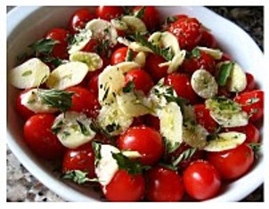 Sa prepari rosii coapte, cu usturoi si menta, este foarte simplu. Sunt o garnitura eleganta, speciala, foarte usor de facut si perfecta alaturi de carne sau alaturi de branza. Ca sa faci rosii copate ai nevoie de rosii proaspete. Cele mai bune sunt rosiile cherry, pentru ca sunt dulci si aromate. Mai ai nevoie de o legatura de menta proaspata si vreo trei catei de usturoi. Daca se poate poti folosi usturoi verde. Are o aroma mai fina si este mult mai decorativ. La toate se adauga cateva linguri de ulei, sare si piper din besug. Spala rosiile si punele intr-un vas care merge la cuptor. Inteapa fiecare rosie cu o furculita, dar doar cat sa strapungi coaja, pentru ca aceasta sa nu se crape la copt. Pune sare si piper din belsug. Stopeste rosiile cu ulei si presara deasupra usturoiul tocat in felii subtiri. Adauga menta tocata in bucati mari. Coace rosiile, in cuptorul bine incins inainte, vreme de 40 de minute, la foc potrivit. Din cand in cand scoate tava si unge sosiile cu sosul din tava. Rosiile coapte sunt delicioase calde, drept garnitura, sau reci, servite pe felii de paine prajita. Daca vrei ceva mai complicat adauga printre rosii o mana de masline negre si un ardie iute rosu tocat marunt. Presara deasupra o lingura de parmezan ras si amesteca totul usor inainte de a coace rosiile. Distribuie articolul pe: