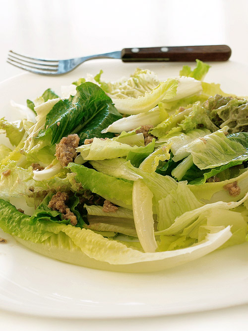 Am decoperit recent aceasta salata cu ton si mi-a placut atat de mult, incat am repetat-o de mai multe ori. Este foarte hranitoare si gustoasa, are putine calorii si este foarte usor de preparat. Este perfecta si la micul dejun, si la parnz, si la cina, oferindu-ti energie si vitamine. Ca sa faci salata de ton ai nevoie de cateva frunze de salata romana, cateva frunze de salata lolo rosie, cate frunze de salata iceberg, (sau orice alt mix de salat doriti), o conserva de ton in suc propriu, o lingura ulei de susan presat la rece, zeama de la jumatate de lamaie, sare si piper dupa gust. Salata poate fi din oricare va place voua mai mult. Se pot face amestecuri din mai multe feluri, sau puteti folosi doar un singur soi. De asemenea mai puteti adauga si alte legume care va plac, cum ar fi castravetii, morcovii, telina etc. Salata se spala foarte bine, frunza cu frunza si apoi se scurge bine de apa. Se rupe cu mana in bucati mari, apoi se amesteca. Se adauga conserva de ton. Se amesteca usor, apoi se stropeste totul cu ulei de susan presat la rece (se poate folosi ulei de masline extravirgin) si cu zeama de la o jumatate de lamaie. Se serveste imediat. 100 de g de salata de ton contine: 41 calorii, 18 g proteine, 0,3 g lipide si 3 g carbohidrati Pofta buna! Distribuie articolul pe: