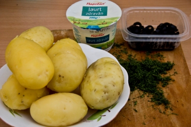 Pentru aceasta salata de cartofi copti ai nevoie de : 4-5 cartofi copti, o mana de masline, 200 de grame de iaurt, sare, marar proaspat si piper alb. Aroma cartofilor copti si cea a mararului se amesteca intr-o combinatie ispititoare. Incepem prin a prepara sosul de iaurt, condimentandu-l cu sare, piper si marar sau cam orice condiment sau planta aromata va place. Il amestecam cu grija cu cartofii copti, taiati in feliute si cu maslinele. Daca vi s-au murat castravetii, nu-i deloc o idee rea sa adaugati si doi castraveti taiati marunti. Si gata, aveti o salata de cartofi copti satioasa si gustoasa! Sa va fie de bine! Incearca si cartofi copti cu fasole verde si ou. Distribuie articolul pe: