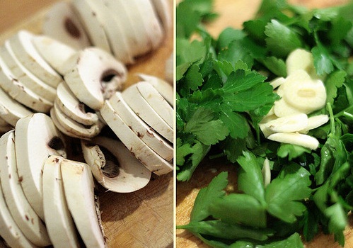 Ce iti trebuie ca sa prepari salata de ciuperci cu paste: 500 de grame de ciuperci (ingredientele sunt pentru patru portii), cinci-sase catei de usturoi, o legatura de patrunjel proaspat, o lingura de suc de lamaie, sare, piper, trei linguri de ulei, 500 de grame de paste.