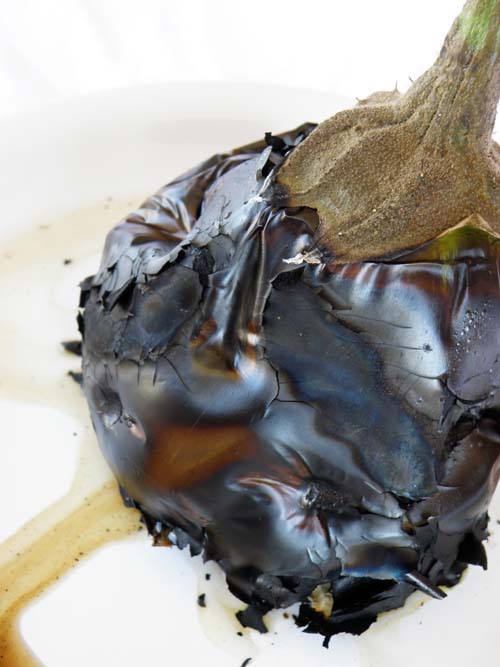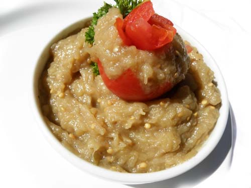 Si pentru ca nu vreau sa transform salata de vinete intr-o bomba calorica, am decis sa o prepar fara maioneza. A iesit foarte gustoasa si acum o prefer celei cu maioneza. Ingrediente: 1 kg vinete o jumatate de ceapa mica sare, piper dupa gust 50 ml ulei de masline Am descoperit un soi de vinete cu care nu am dat gres niciodata, in sensul ca s-au copt intotdeauna foarte frumos si repede, contin putine seminte si sunt dulci. Aceste vinete, sunt putin mai inchise la culoare si sunt deformate, ca si cum ar fi crescut mai multe intr-una singura. Pot parea usor necoapte, dar va asigur ca sunt foarte bune. Asadar, coacem vinetele, fiecare cum vrea sau cum poate. Eu le coc direct pe flacara de la aragaz, punand folie de aluminiu dedesubt ca sa nu transform totul intr-un dezastru. Se pot coace insa, si pe un disc sau pe gratar. Se lasa sa se raceasca, apoi se curata foarte bine de coaja arsa. Se lasa cel putin 1 ora in frigider, acoperite cu o folie de plastic. In acest timp ele vor lasa o zeama maronie pe care o vom arunca. Le putem toca cu un cutit sau le putem marunti in robotul de bucatarie. O jumatate de ceapa mica se da prin razatoarea mica si se amesteca cu vinetele tocate. Apoi, adaugam uleiul, cate putin amestecand in continuu cu mixerul, ca la maioneza. La final adugam sare si piper dupa gust. Se serveste rece, cu rosii sau ardei. 100 de grame de salata de vinete contine: 76 de calorii, 0,8 gr. proteine, 5 grame lipide, 8,7 grame carbohidrati. Tips: Daca nu va place ceapa, o puteti inlocui cu 2-3 catei de usturoi pe care ii puteti rade dupa aceeasi metoda. Aceasta salata este perfecta si ca aperitiv pentru mese festive daca o folositi pentru umplerea rosiilor. Vinetele coapte si curatate se pastreaza excelent in congelator pentru iarna. Pofta buna! Distribuie articolul pe: