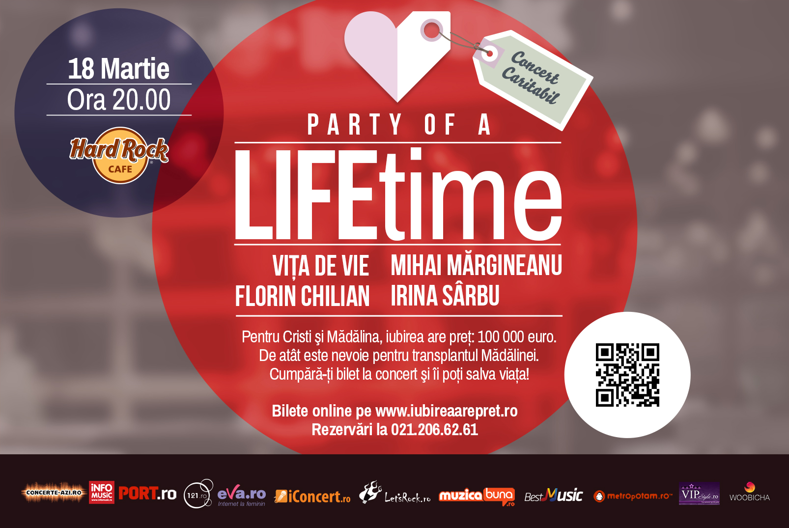 Pentru Madalina si Cristi iubirea are pret: 100.000 de euro. Aceasta este suma de care au nevoie, pentru ca Madalina sa faca transplant de maduva in Italia in cel mai scurt timp. Madalina Neata este medic specialist la clinica Victor Babes, diagnosticata cu leucemie acuta mieloblastica. Pentru a strange banii necesari pentru transplant, Cristi, sotul Madalinei, impreuna cu prietenii si colegii, au demarat o campanie umanitara – Iubirea are Pret – pentru a construi cel mai scump martisor din lume si a-i salva viata Madalinei. Din donatii si sponsorizari s-au strans pana in prezent peste 80.000 de euro, iar Madalina este pregatita pentru interventia care ii va salva viata. In prezent se afla internata in Bucuresti pentru o ultima cura de tratament, cea de consolidare inainte de transplant. Mai este nevoie de mai putin de 20.000 de euro pentru ca Madalina sa poata ajunge la clinica din Pescara imediat ce se va gasi un donator compatibil. Toti cei care pot sa ajute sunt asteptati pe 18 martie la Hard Rock Café la ora 20.00, pentru un concert special cu Vita de Vie, Mihai Margineanu, Florin Chilian si Irina Sarbu. Din vanzarea biletelor la concert si organizarea unor licitatii speciale il putem ajuta pe Cristi sa-i salveze viata sotiei lui. Biletele pot fi cumparate online pe www.iubireaarepret.ro sau rezervate telefonic la 021.206.62.61 Accesul va fi posibil incepand cu ora 19.00. Mai multe informatii despre campanie: www.iubireaarepret.ro sau www.facebook.com/iubireaarepret Donatii Online https://secure.mobilpay.ro/buy-product/uf9per Prin Pay Pal acceseaza www.iubireaarepret.ro/ajuta si foloseste butonul de donatii prin Pay Pal.Prin transfer bancar : Cont LEI deschis la BCR: Cod IBAN: RO85RNCB0072050458810001; Titular: Neata Cristian Mihail Haideti la concert sa ii ajutam! Distribuie articolul pe: